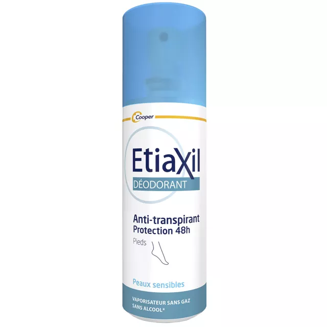 Антиперспірант-дезодорант Etiaxil «Захист 48 годин» у формі спрею розроблений для щоденного використання з метою регулювання помірного потовиділення нiг. Забезпечує захист від поту та неприємного запаху протягом 48 годин, запобігає появі жовтих плям та білих слідів на одязі. Стриманий та легкий аромат забезпечує відчуття свіжості протягом дня.