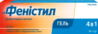 «Фенистил гель 0,1% туба 30 г, Novartis Consumer Health» – это лекарственное средство для местного применения, относящееся к группе антигистаминных препаратов. Активное вещество – диметинден малеат (1 мг/г) – блокирует H1-гистаминовые рецепторы, уменьшая проявления аллергии: зуд, покраснение, отёк и раздражение. Средство быстро впитывается, оказывает охлаждающее и местноанестезирующее действие. Подробное описание механизма действия и правил использования содержит к препарату «Фенистил гель» инструкция, прилагаемая производителем к упаковке. Отпускается без рецепта, однако применение желательно согласовать с врачом, особенно у детей.