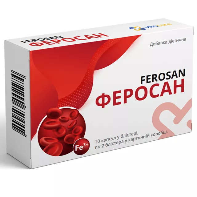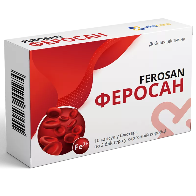 До складу Феросану входить тривалентне залізо: після всмоктування воно зв’язується з феритином і зберігається в печінці. Далі в кістковому мозку воно включається до складу гемоглобіну.