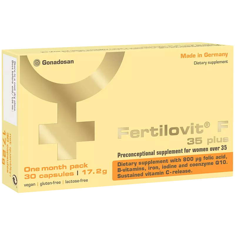 Fertilovit® F 35 plus – дієтична добавка до раціону харчування, яка може бути рекомендована жінкам на етапі планування вагітності як додаткове джерело вітамінів, мікро і макроелементів, сприяє загальному зміцненню організму, покращенню репродуктивної функції; має антиоксидантні властивості.
