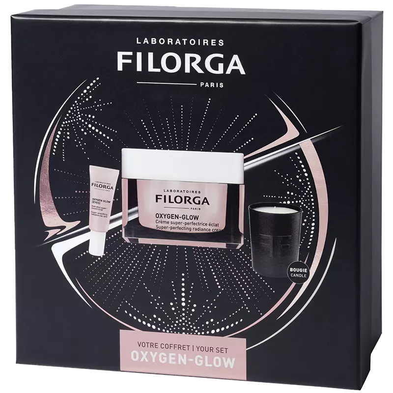 FILORGA Набір новорічний ОКСИДЖЕН-ГЛОУ (Оксиджен-Глоу Крем 50 мл + Оксиджен-Глоу Засіб Для Контуру Очей 4 мл + Свічка)