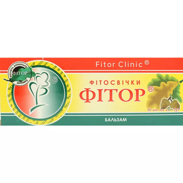 Бальзам Фітор - фіторові свічки є ефективним завдяки присутності в своєму складі підвищеного вмісту унікальної натуральної добавки ФІТОР (екстракт листа дуба), що включає дубильні речовини, кварцетон, флавоноїди, еллагову, фульвову і галловую кислоти, пектини, пентозани, флобафен, моноцукри, білкові речовини, олії, вуглеводи, крохмаль, вітаміни, макро- і мікроелементи (всього 32 елемента).