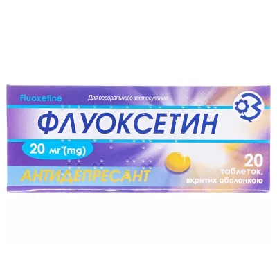 Фармакокінетика. Всмоктується з травного тракту. Слабко метаболізується при першому проходженні через печінку. Приймання їжі не впливає не ступінь всмоктування, хоча може уповільнити його швидкість. Максимальна концентрація у плазмі крові досягається через 6-8 годин. Рівноважна концентрація у плазмі крові досягається тільки після безперервного приймання протягом кількох тижнів. Зв’язування з білками – 94,5 %. Легко проникає через гематоенцефалічний бар’єр. Метаболізується у печінці шляхом деметилювання з утворенням основного активного метаболіту – норфлуоксетину. Період напіввиведення флуоксетину становить 2-3 дні, норфлуоксетину – 7-9 днів. Виводиться нирками (80 %) і через кишечник – приблизно 15 %.