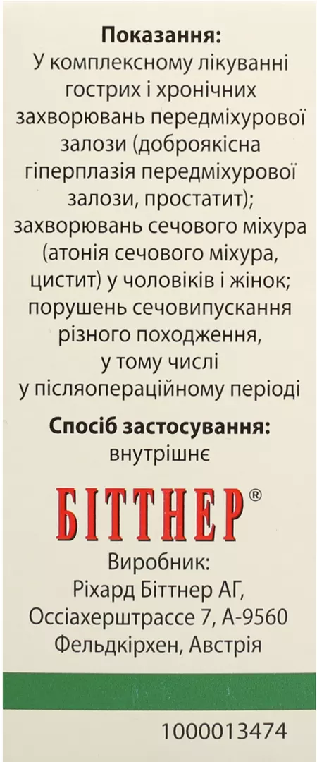 Курс лечения. При остром простатите, остром цистите курс лечения составляет 2 нед. При доброкачественной гиперплазии (аденоме) предстательной железы, хроническом простатите, хроническом цистите, атонии мочевого пузыря, хронических нарушениях мочеиспускания различного происхождения курс лечения — 3 мес. При стабилизации состояния возможен переход на 1–2-разовый поддерживающий прием.