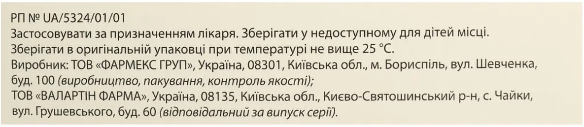 Виробник.ТОВ «ВАЛАРТІН ФАРМА».