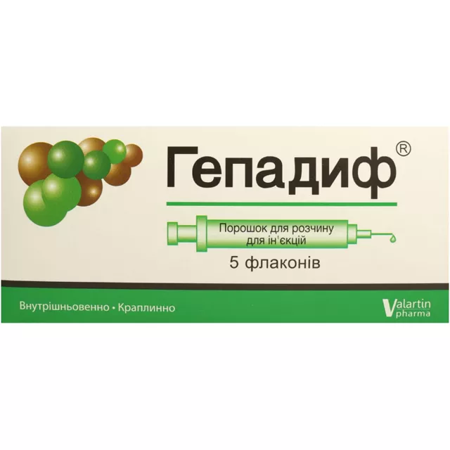 Аналоги Гепадиф порошок для раствора для инъекций 942,05 мг флаконы №5, Фармекс Групп