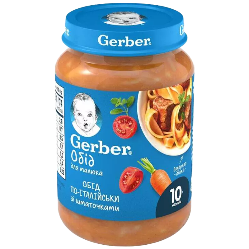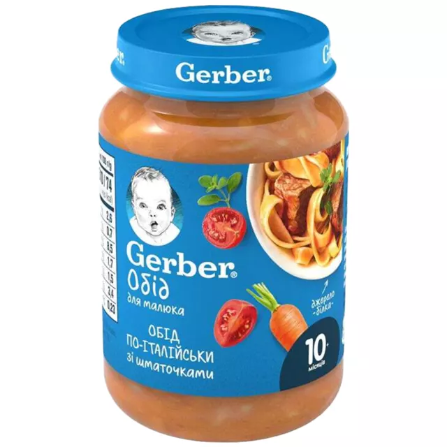 Пюре Gerber Ласощі по-італійськи відмінно підходить для розширення раціону і розвитку як смакового сприйняття малюка, так і жувальних навичок в період поступового переходу до дорослого меню.