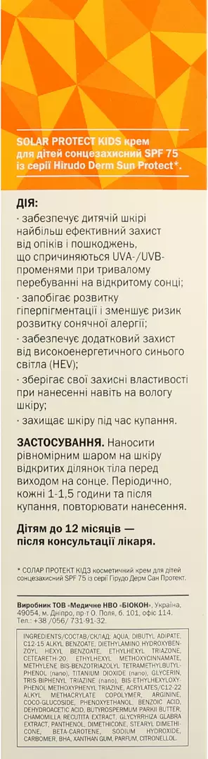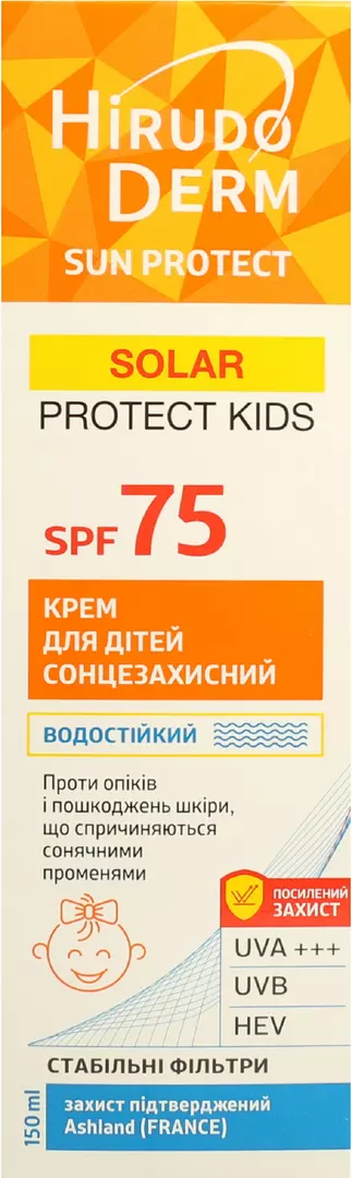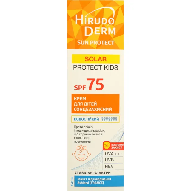 ГирудоДерм (HirudoDerm) Сан Протект крем для детей солнцезащитный SPF75 150 мл, БИОКОН МНПО