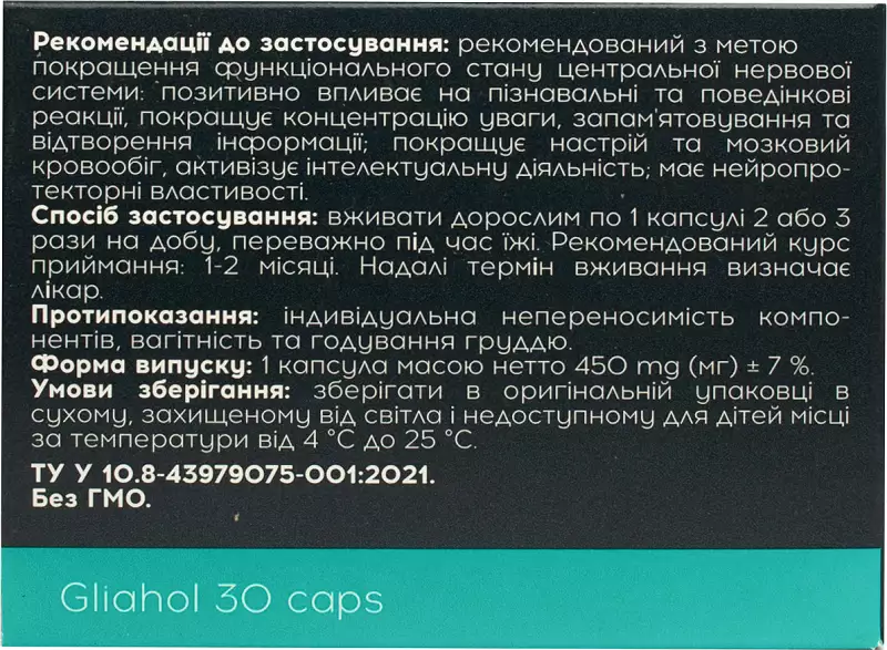 Добавка дієтична нутрицевтична «Гліяхол» / «Gliahol»