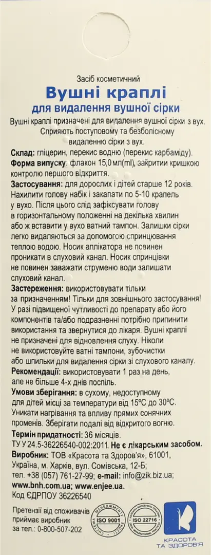 и/или раздражении нужно прекратить использование и обратиться к врачу. Ушные капли