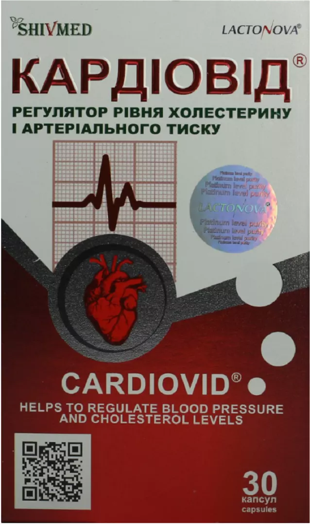Механізм дії капсул "Кардіовід" :Біоактивність фітостеролів призводить до пригнічення ферментів ГМГ-КоА-редуктази і відповідно до зниження синтезу холестерину ЛПНЩ в печінці та всмоктування холестерину з кишечника.