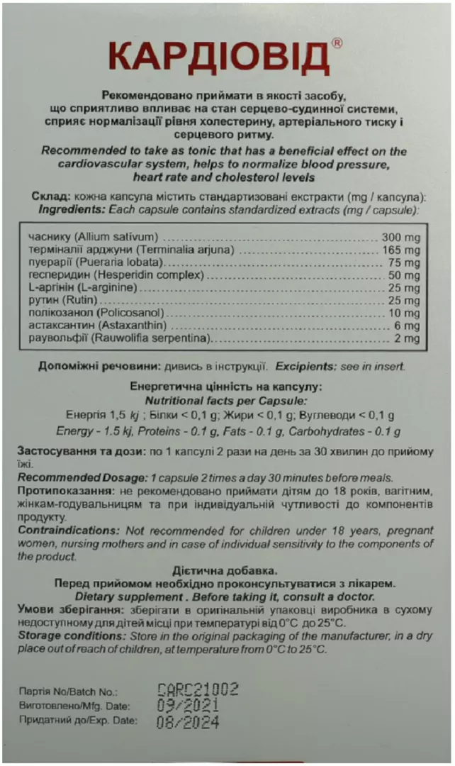 капсул "Кардіовід" :