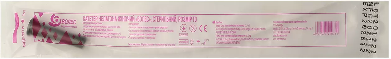 для Катетер урологічний Волес типу Нелатон жіночий, 10 Fr, 1 штука
