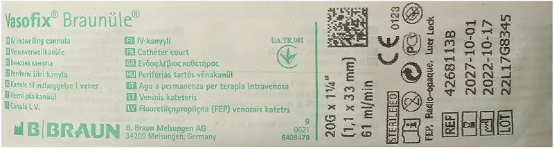 Инструкция для Катетер внутривенный (канюля) Вазофикс Браунюля (Vasofix Braunule) размер 20G (1,1 мм*33 мм, розовый) 1 шт Распечатать