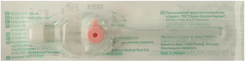 Вазофікс Браунюля - внутрішньовенний катетер з ін'єкційним портом, що дозволяє проводити ін'єкції без голок та ризику уколу.