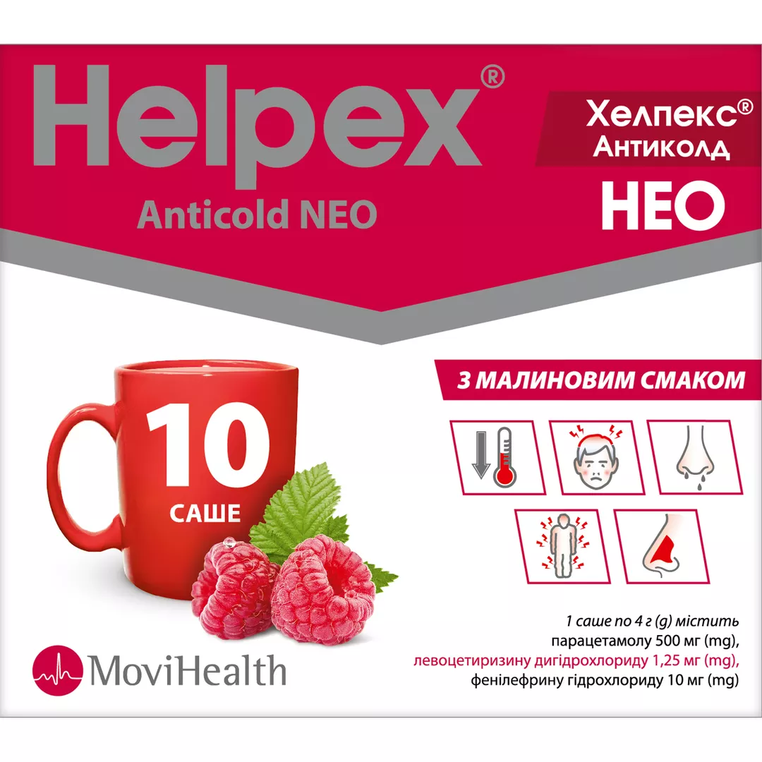 Хелпекс Антиколд Нео с малиновым вкусом порошок саше 4 г №10, Alpex Pharma