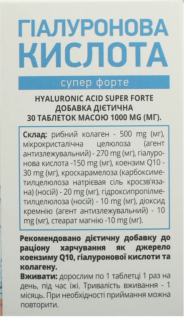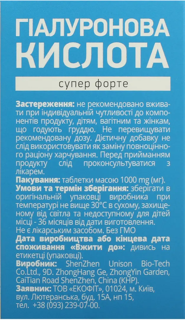 Гиалуроновая кислота супер форте таблетки №30, ShenZhen Unison Bio-Tech Co. Ltd