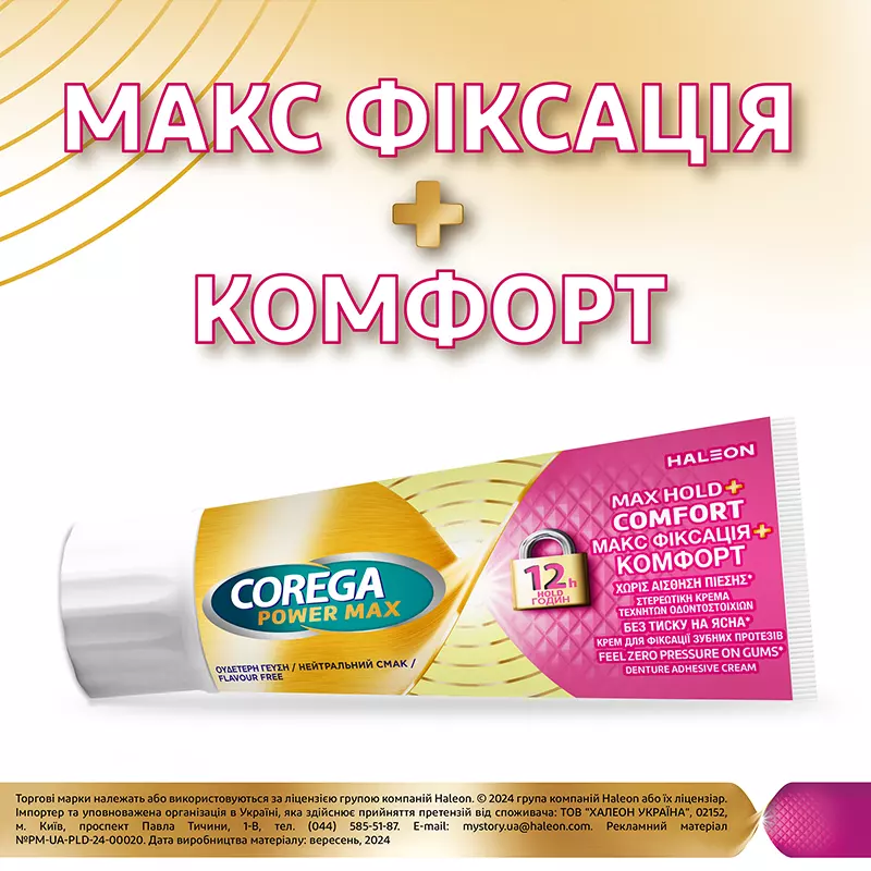 Корега Макс Фиксация + Комфорт крем для фиксации зубных протезов 40 г, Stafford-Miller Ir.L.