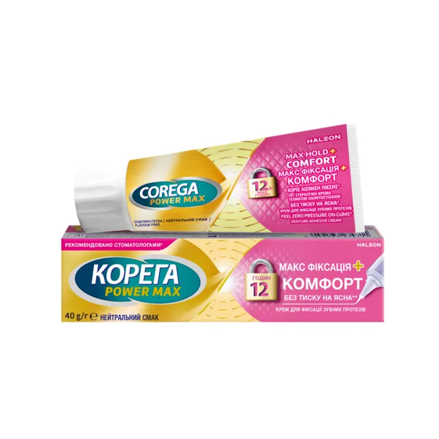 Крем для фіксації зубних протезів Корега Макс Фіксація + Комфорт 40 г