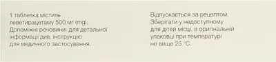 1 таблетка містить леветирацетаму 250 мг або 500 мг;