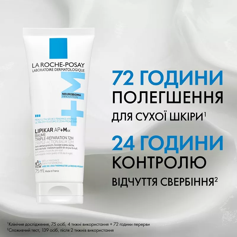 • Посилена формула***: La Roche-Posay представляє комплекс AP+M [Aqua Posae + Microresyl] у поєднанні з НЕЙРОБІОМОЮ – новітньою технологією, яка діє на поверхні шкіри, ефективно допомагаючи зменшити відчуття свербіння, спричинене сухістю.
