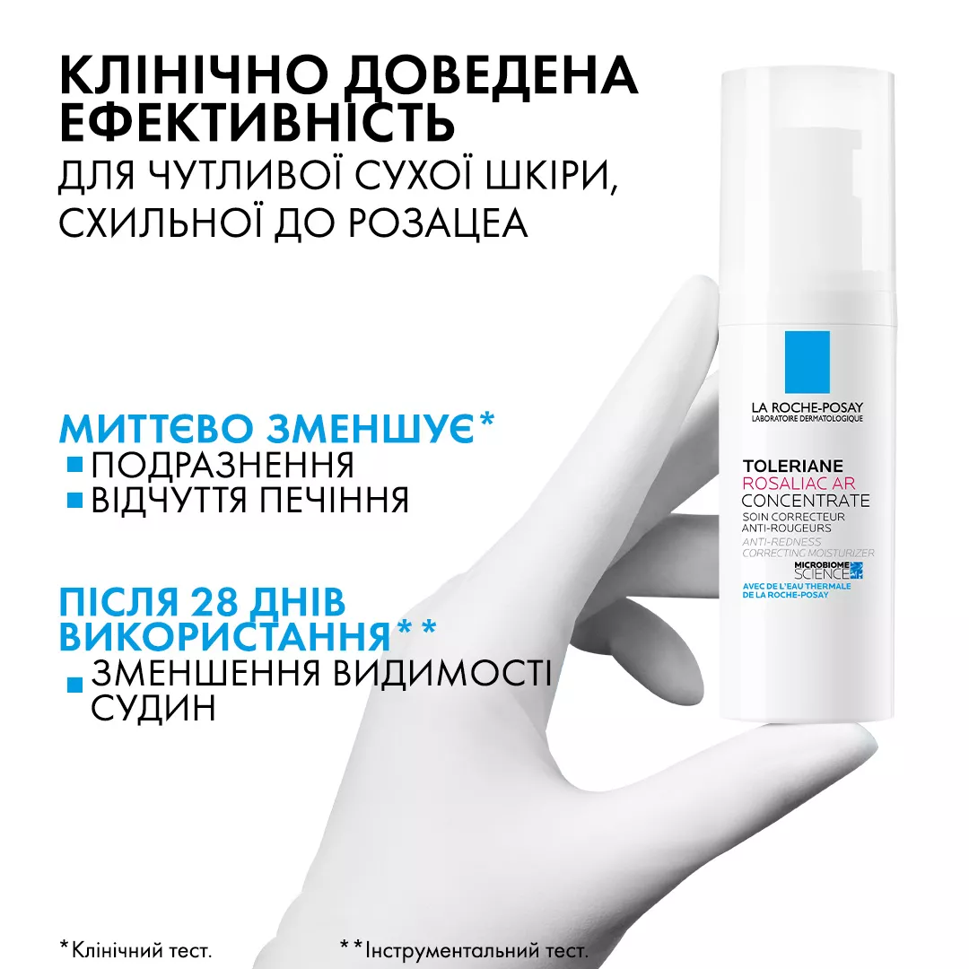 Баланс мікробіому (невидимої екосистеми мікроорганізмів на шкірі) сприяє забезпеченню здорового стану шкіри. Для шкіри з проявами розацеа характерні незбалансований мікробіом, почервоніння, відчуття дискомфорту та поколювання. НАУКОВІ ДОСЛІДЖЕННЯ: У формулі, розробленій для мінімізації проявів розацеа, міститься Сфінгобіома - інгредієнт, отриманий із Термальної Води La Roche-Posay, котрий сприяє підтримці мікробіому.