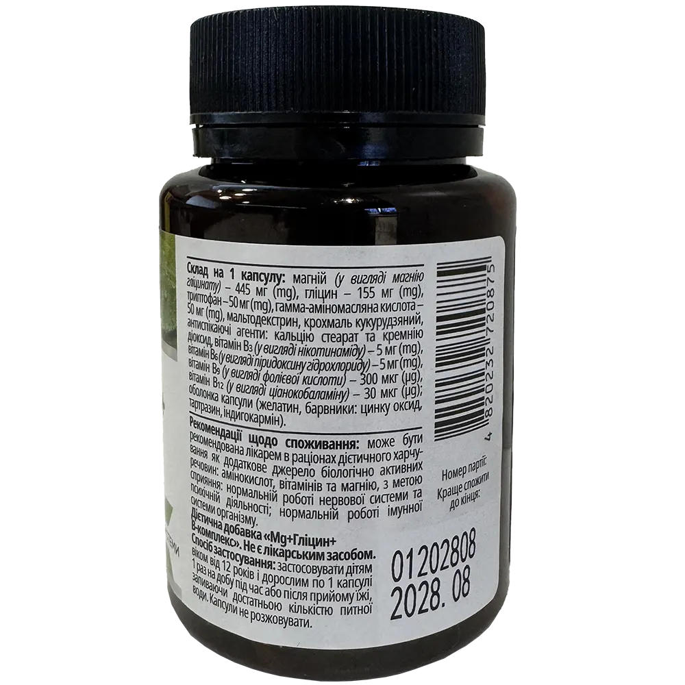 Дієтична добавка «Mg+Гліцин+В-комплекс. Не є лікарським засобом.