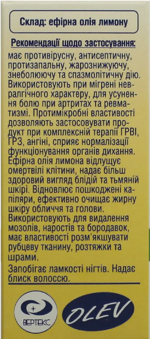 Завдяки потужним антисептичним властивостям, її використовують при лікуванні серйозних шкірних захворювань. Ефірна олія Лимонна - справжнє джерело краси і молодості.