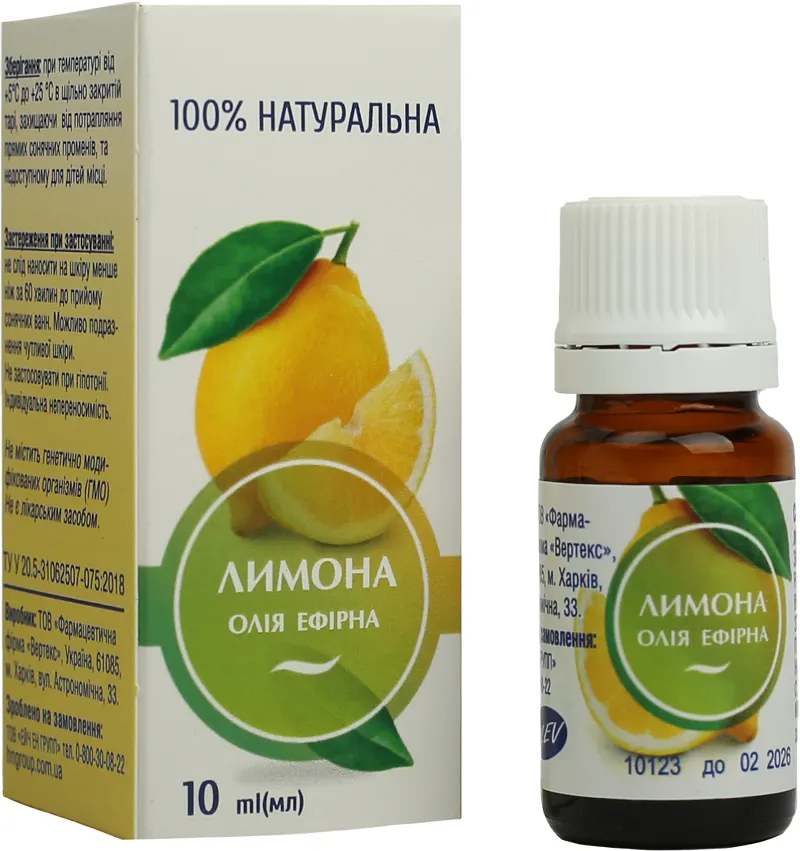 Масло эфирное лимонное Вертекс 10 мл, Вертекс