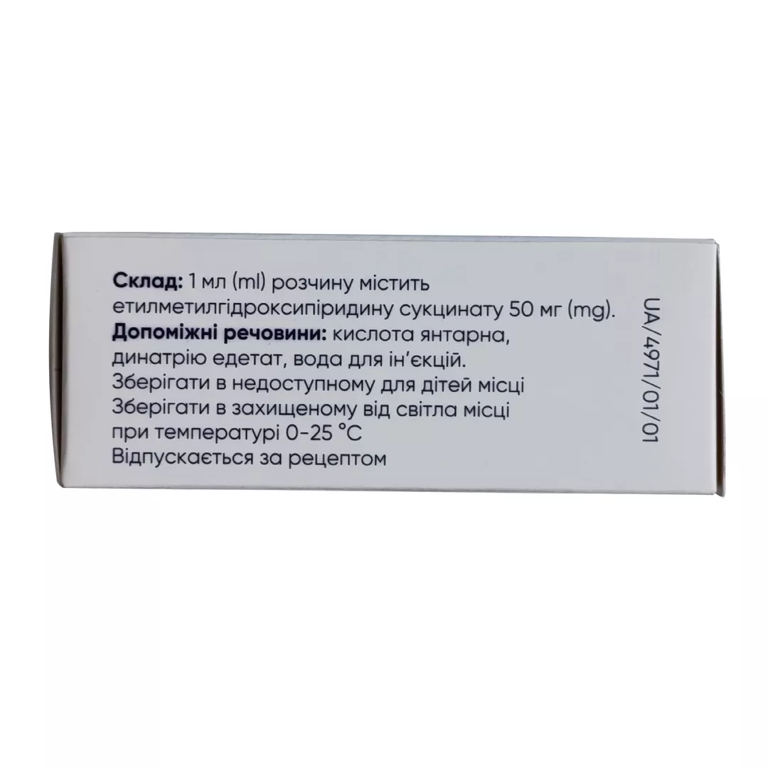 1 мл розчину містить етилметилгідроксипіридину сукцинату – 50 мг;