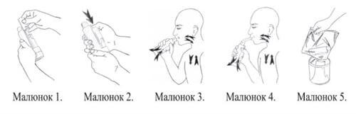 Перші 2-3 вдихи пацієнту слід зробити не глибоко, після чого робити вдихи як завжди. Видихи слід проводити виключно через вихідний отвір медичного виробу (або через мундштук при його використанні) (див. малюнок 3, 4) усередину приладу, оскільки залишки речовини після видиху затримуються сорбентом у камері деактивації в корпусі приладу. Пацієнт може самостійно припинити дихання через прилад, коли необхідний рівень знеболювання досягнутий. Коли почуття болю повернеться, пацієнт може самостійно знову почати дихати через прилад.