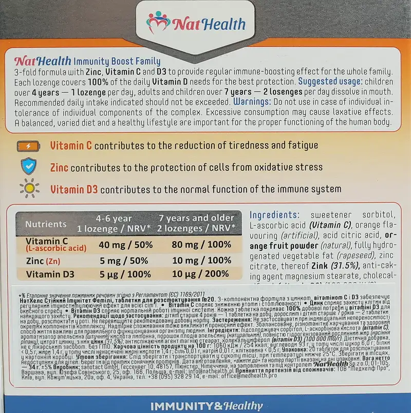 НатХелс Стойкий Иммунитет Фемили таблетки д/ рассас. №20, NatHealth Sp.z.o.o