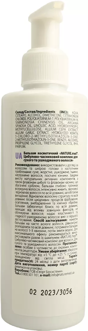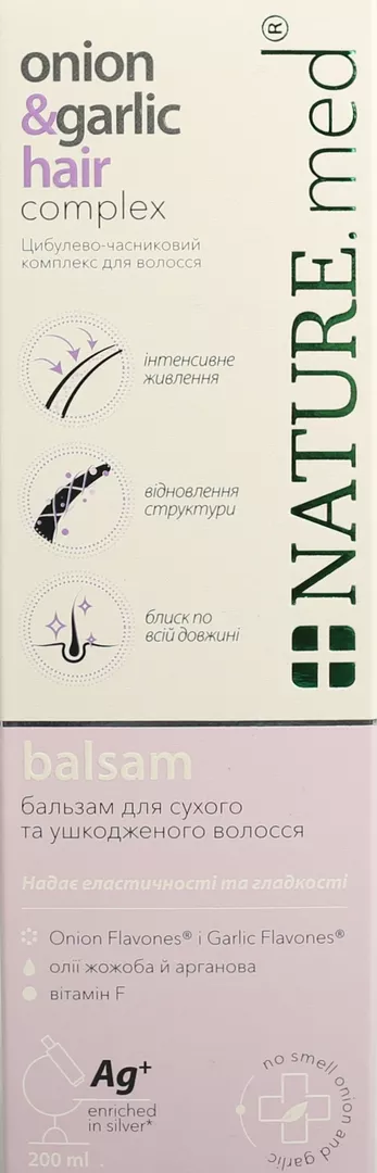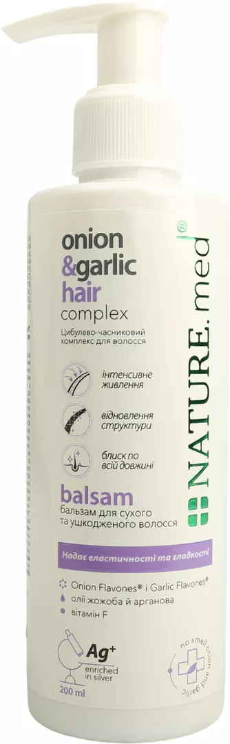 Бальзам NATURE.med цибульно-часниковий комплекс для сухого і пошкодженого волосся, 200 мл