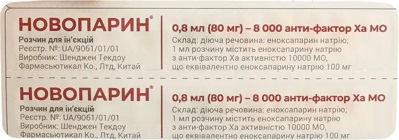 Новопарин раствор для инъекций 80 мг шприц 0,8 мл №2, Shenzhen Techdow Pharmaceutical