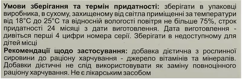 Дорослі і діти старше 12 років по 1 капсулі один-два рази на день під час їжі, запити водою. Курс прийому до 12 тижнів. Надалі курс прийому і можливість повторного курсу узгоджувати з лікарем.