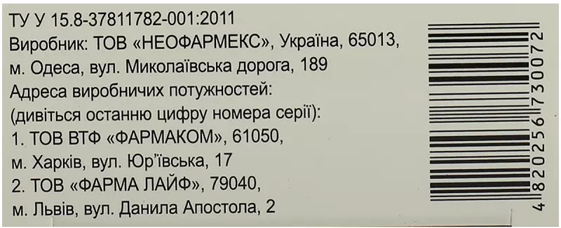 Сеть аптек «Бажаємо здоров'я» сотрудничает только с проверенными поставщиками. Препараты, поступающие в наши аптеки, проходят все соответствующие этапы реализации лекарственных средств. Больше информации.
