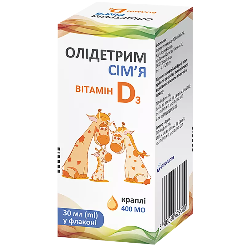 Олидетрим Семья витамин D3 капли оральные 400 МЕ флакон 30 мл, Polpharma