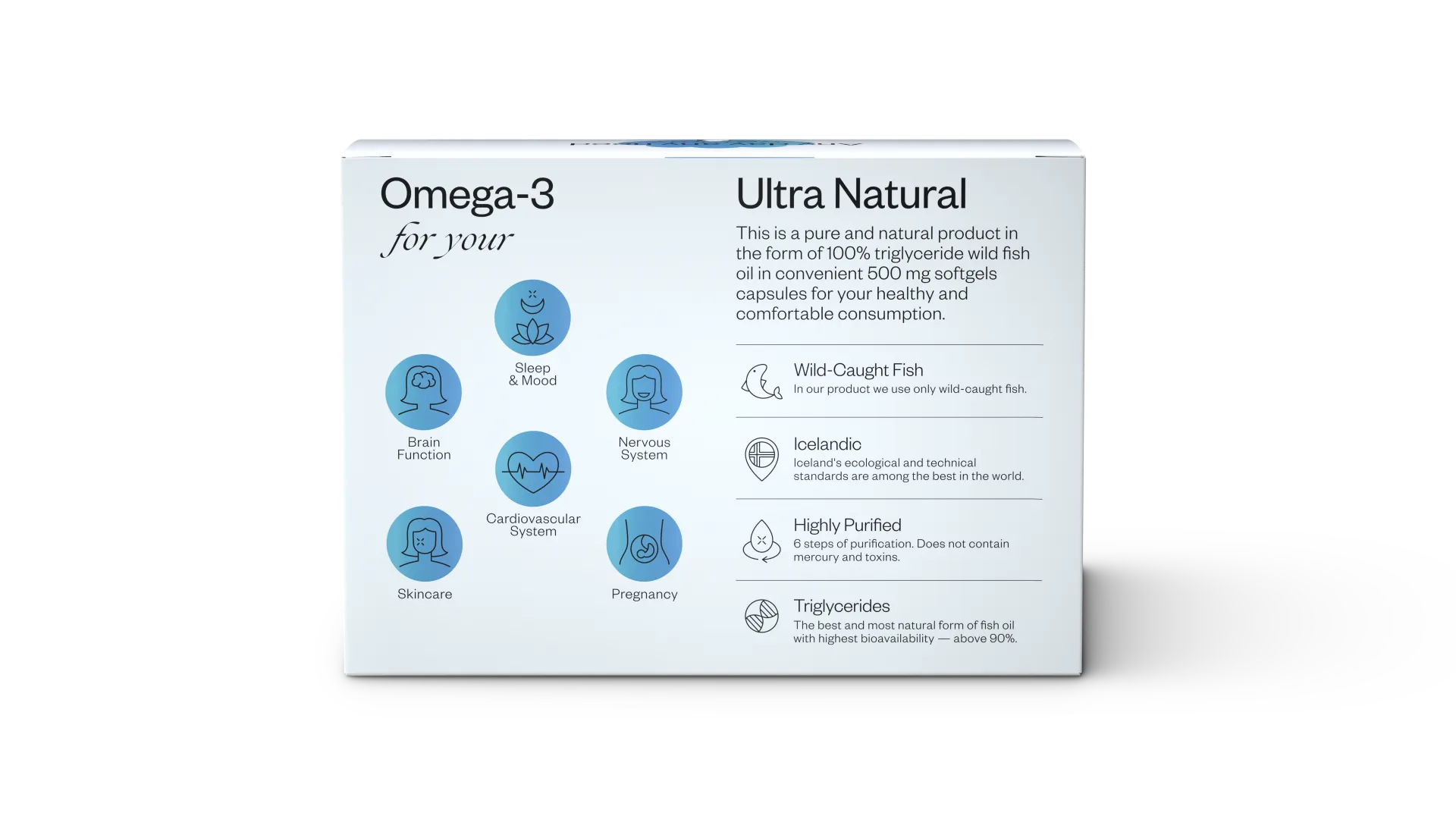 - Завдяки натуральній формі, засвоюваність Омега-3 перевищує 90%.