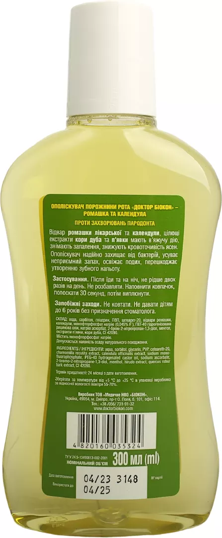 Ополіскувач порожнини рота Доктор Біокон проти пародонтозу, ромашка і календула 300 мл