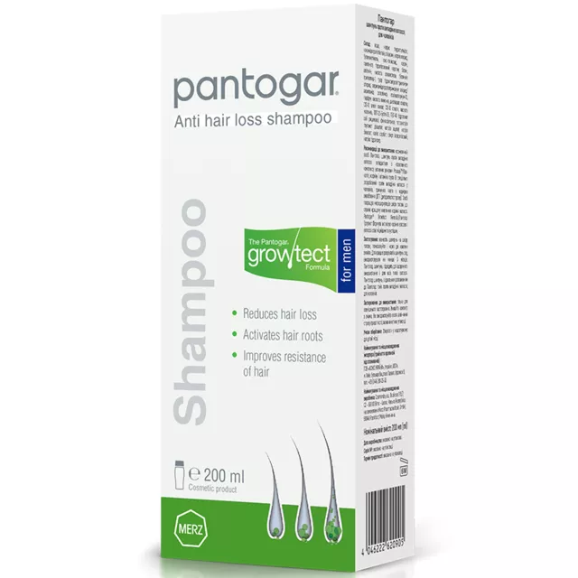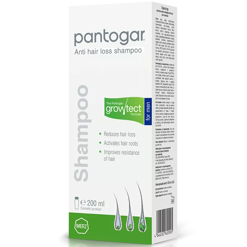 косметичний засіб Пантогар, шампунь проти випадіння волосся, складається з ефективного комплексу активних речовин ProcapilTM / Прокапіл, кофеїну і вітамінів групи В, спеціально розроблений проти випадіння волосся у чоловіків, причиною якого є надмірне вироблення ДГТ (дигідротестостерону). Засіб покращує мікроциркуляцію шкіри голови, що сприяє кращому живленню коріння волосся. Pantogar® Growtect Formula / Пантогар Гроутект Формула активізує коріння волосся і волосся стає міцнішим та густішим.