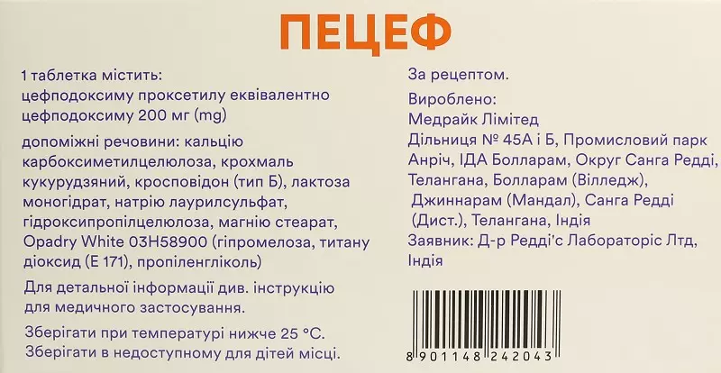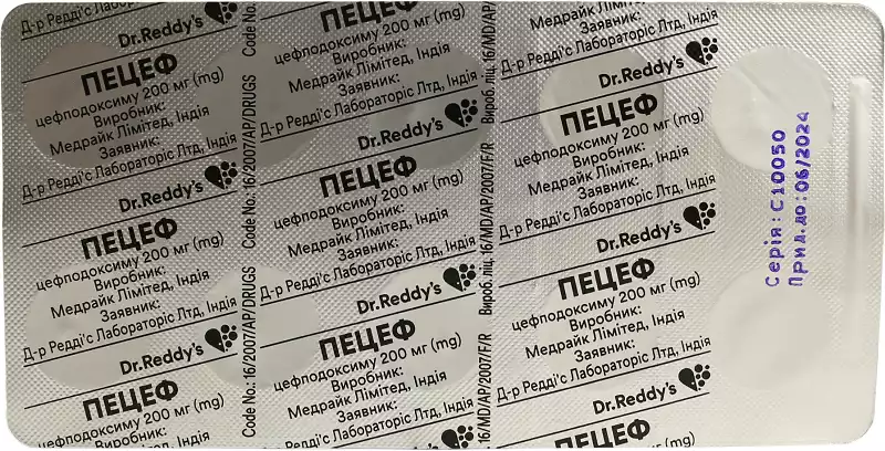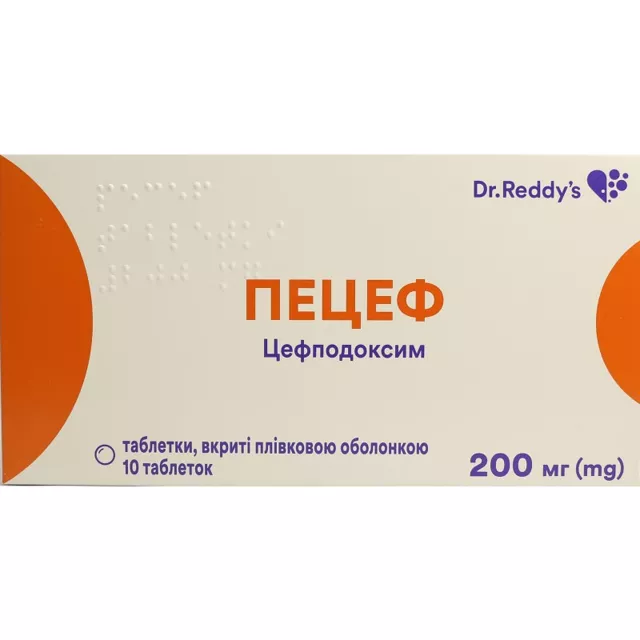 Пецеф таблетки покрытые оболочкой 200 мг №10, Medreich Limited