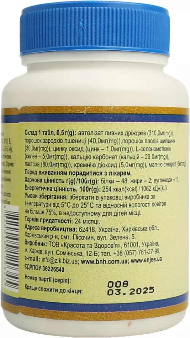 Виробник: ТОВ Красота та Здоров'я, 61001, Україна, м. Харків, вул. Сомівська, 12-Б,+38 (057) 742-80-12; [email protected]; bnh.com.ua; enjee.ua. Код ЄДРПОУ 36226540.