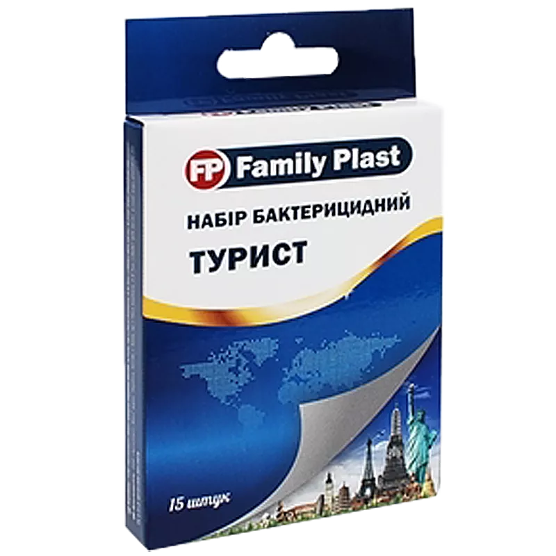Набір пластирів медичних «FP Family Plast» бактерицидних Турист, 15 штук