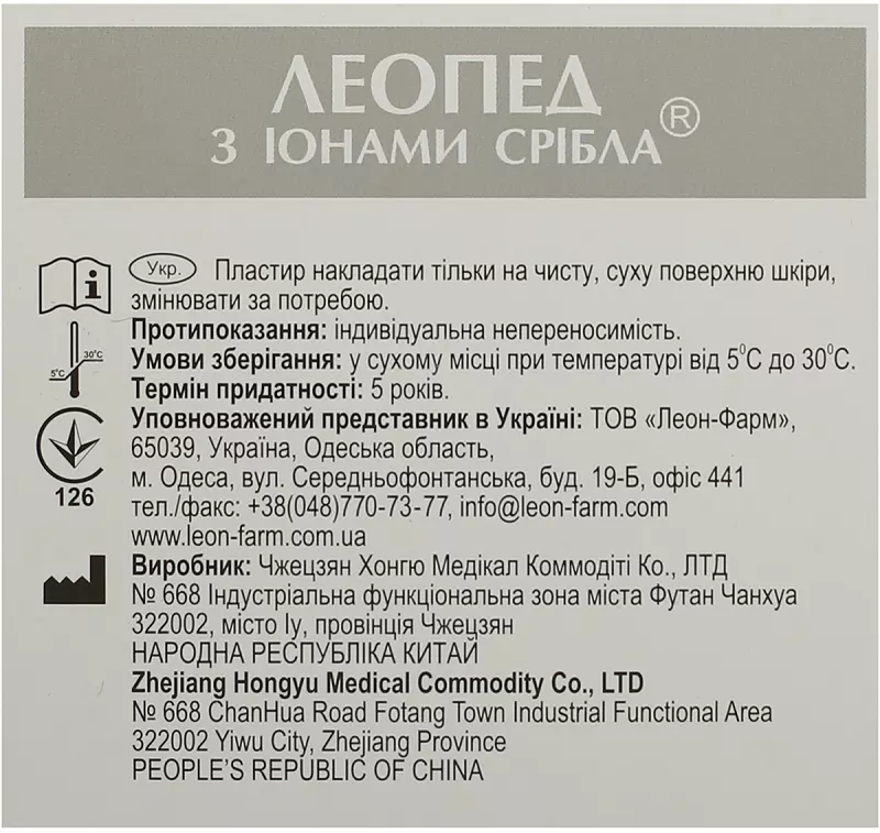 Леопед - готова стерильна пов'язка, мікросітка подушки якої покрита іонами срібла . Пов'язка сприяє контролю ранової інфекції і запобігає реінфікуванню рани. Іони срібла мають відмінні антисептичні властивості, тим самим знижуючи життєдіяльність і блокуючи розмноження патогенних бактерій, вірусів і грибків.