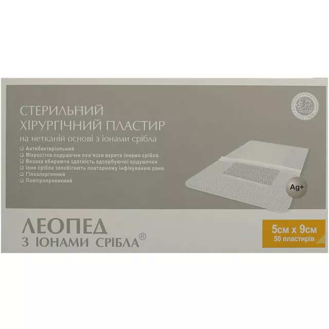 Пластир медичний Леопед 5 см х 9 см з іонами срібла, 50 штук