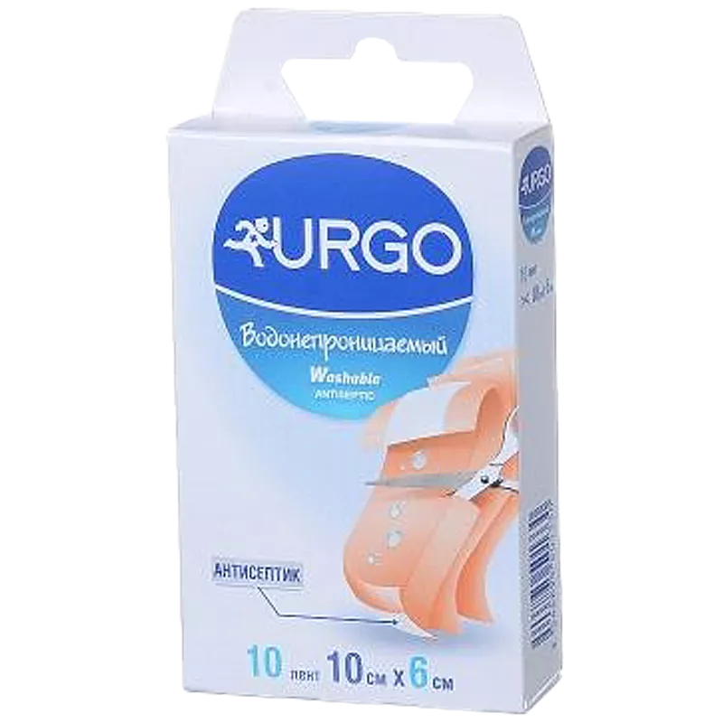 Пластырь Урго (URGO) водонепроницаемый с антисептиком лента 6 см*10 см 10 шт, Laboratoires URGO