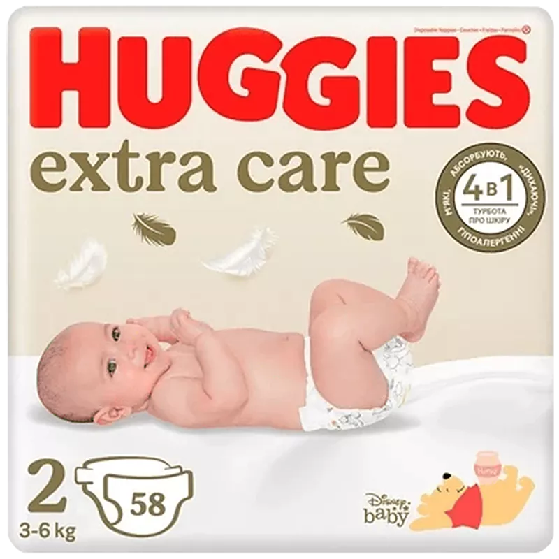 Підгузки Huggies Extra Care дитячі, розмір 2, 3-6 кг, 58 шт