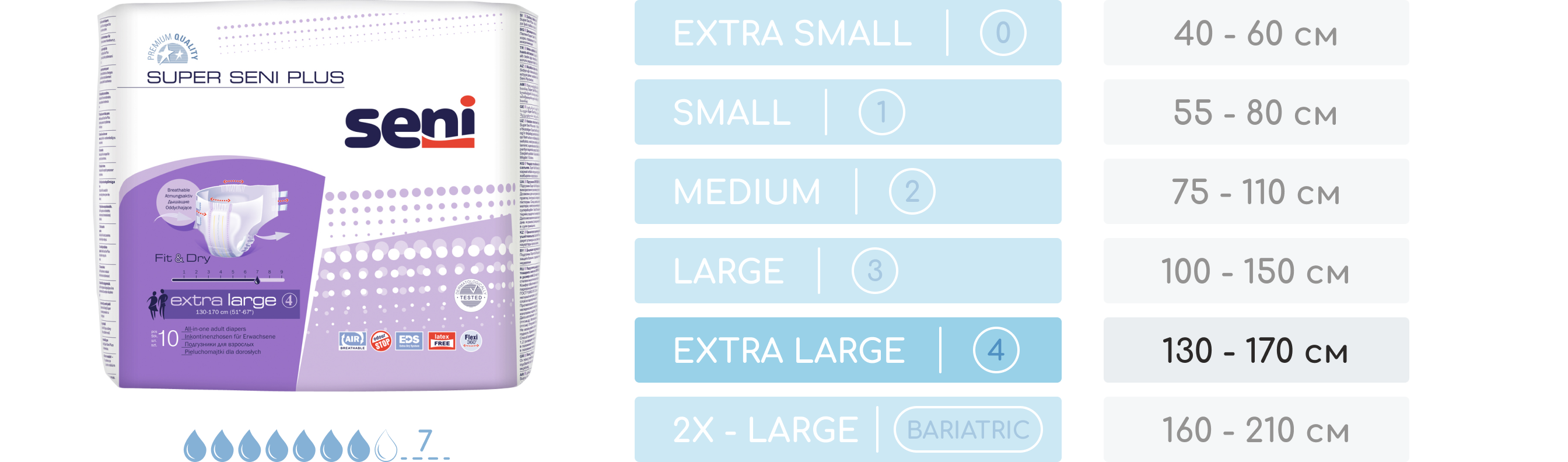 Подгузники Seni Super Plus премиум-качества предназначены для использования при тяжелой степени недержания. Разработаны как для активных людей, так и для людей с ограниченной мобильностью.