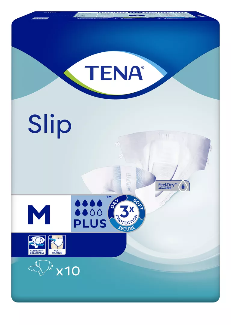 Подгузники TENA Slip Plus c технологией FeelDry Advanced ™ - это универсальные средства защиты при недержании, которые обеспечивают тройную защиту для сухости, мягкости и предотвращения протеканий. Благодаря технологии FeelDry Advanced ™ с новыми верхним и распределительным слоями жидкость мгновенно отводится от кожи и впитывается подгузником, а высокоабсорбирующая сердцевина с суперабсорбеном (SAP) удерживает даже большие ее объемы, обеспечивая сухость и комфорт, что так важно для здоровья кожи. Подгузники отличаются хорошо прилегающей к телу посадкой и высокой степенью защиты от протеканий. Они изготовлены из мягкого дышащего материала с использованием технологии ConfioAir™, который обеспечивает циркуляцию воздуха и позволяет коже дышать. Двойные эластичные барьеры у ног служат дополнительной защитой от протеканий. Открытый дизайн с эластичным поясом и прочными застежками обеспечивает быструю смену в положении стоя или лежа, позволяют многократно перестегнуть и отрегулировать подгузник для надежной и комфортной посадки. Для предупреждения появления нежелательного запаха в изделии используется система нейтрализации запаха Odour Neutralizer, а индикатор влаги подсказывает, когда необходимо сменить подгузник.