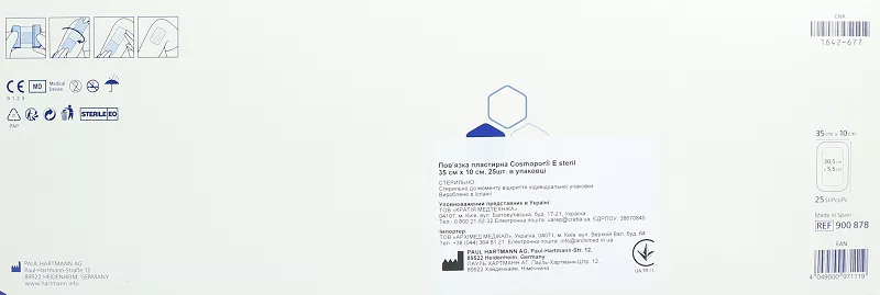 Повязка пластырная Hartmann Cosmopor Е steril размер 10 см*35 см 25 шт, Paul Hartmann